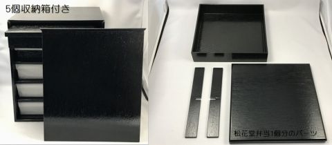 | 商品名: | 【送料無料】木製8.5寸角松花堂 黒目ハジキ 5個1セット 木製収納箱入り![]() |