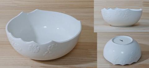 花柄が立体的に盛り上がった「エンボス」が特徴の器です。波打ちになった渕の形状デザインが、更にエレガントさを加えています。