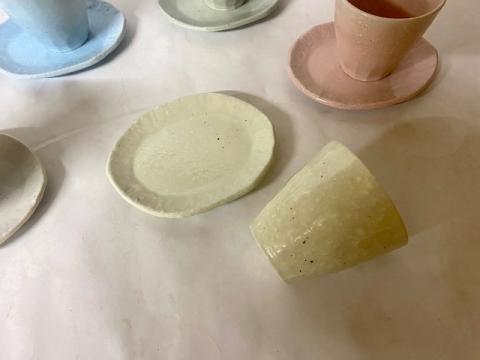 【送料無料】美濃焼カラーズマルチカップ&プレート1組5色アソート