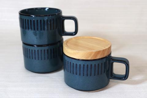 【送料無料】窯変釉(ブルー)スタックマグ(木製蓋付き)