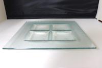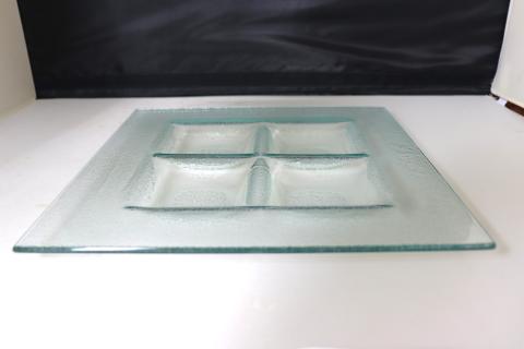 ガラス製でリムがあり、すくいやすい形状に4つ仕切りのある商品です。