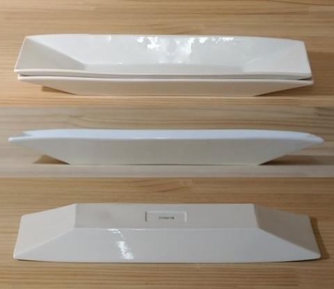 ※デザイン的に製造が難しい形状です。長い辺の中央あたりは、やや開きがちになります。あまり開かないものもあります。陶磁器(焼き物)ですので、できあがりに個体差があります。予めご了承のうえ、ご注文くださいますようお願い致します。