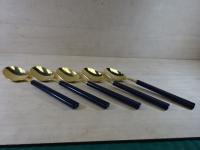 ステンレス 18−0に金メッキを施し、持ち手が樹脂の高級感のある華やかなスプーンです。