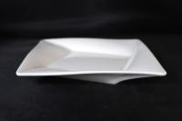 艶のある綺麗な白磁で、角に折り目があり少し立ち上がった形状のプレートです。