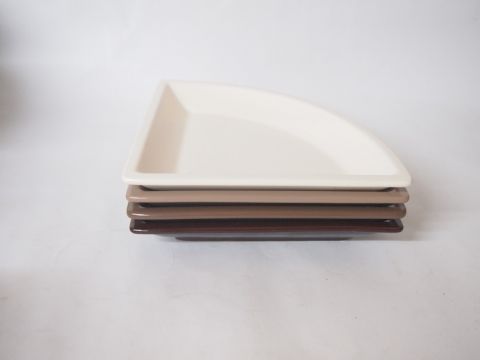 カジュアルなカラーのバリエーションがおしゃれなプレートです。4つを並べると丸型になります。