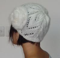 アクリル毛糸で編んだ帽子にラビットファーを可愛らしく
